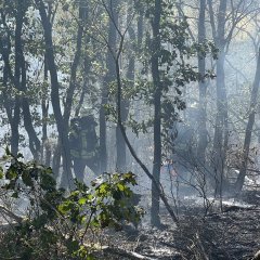 Die Wasserversorgung wurde von mehreren Unterflurhydranten im sogenannten Pendelverkehr sichergestellt. Hierunter auch ein Hydrant an der Realschule Plus. Um den Höhenunterschied zwischen der Kreisstraße und der brennenden Fläche gefahrlos überwinden zu können, wurden von den Einsatzkräften Steckleiterteile eingesetzt. Wie die Feuerwehr Wissen mitteilte, waren die Einsatzkräfte über die rasante Brandausbreitung überrascht. Mit mehreren Strahlrohren wurden die Flammen bekämpft und es konnte nach rund 90 Minuten Feuer in der Gewalt Nachlöscharbeiten gemeldet werden. Der, bei den herrschenden Temperaturen, kräftezehrende Einsatz erforderte einen ständigen Personaltausch.