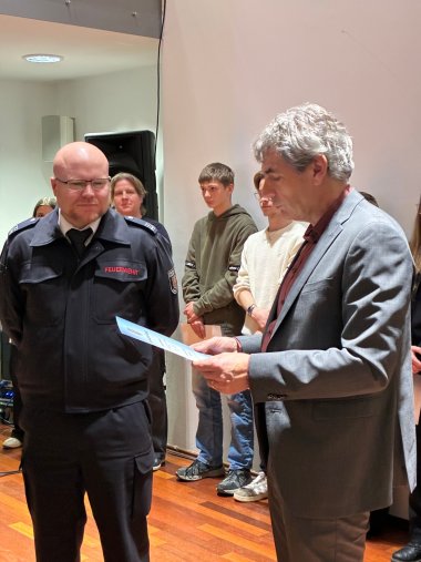 Der langjährige Feuerwehrmann Andreas Voigt (Leitung der Kleiderkammer, Wartung der Schutzausrüstung, Ausbildungstätigkeit) wurden nach 47 Jahren aktivem Dienst in die Altersabteilung verabschiedet.
