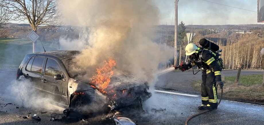 Hamm (Sieg), 26.02.2026 – Am Mittwoch, 25.02.2026 wurde die Freiwillige Feuerwehr Hamm (Sieg) gegen 16:56 Uhr zu einem brennenden PKW nach Etzbach-Heckenhof in die Rother Straße alarmiert. Unter der Einsatzleitung des Wehrleiters Alexander Müller waren insgesamt 20 Einsatzkräfte der Feuerwehr vor Ort, um den Brand zu bekämpfen. Ein Atemschutztrupp des ersteintreffenden Hilfeleistungslöschgruppenfahrzeugs (HLF) konnte den PKW-Brand schnell und effektiv löschen. Die Wasserversorgung wurde durch das ebenfalls alarmierte Tanklöschfahrzeug aus Hamm (Sieg) sichergestellt. Den Grundschutz für die Verbandsgemeinde Hamm (Sieg) wurde durch weiteres Personal am Feuerwehrgerätehaus sichergestellt. Während der Löschmaßnahmen musste die Rother Straße voll gesperrt werden, um die Sicherheit der Einsatzkräfte und aller Verkehrsteilnehmer zu gewährleisten. Neben der Freiwilligen Feuerwehr Hamm (Sieg) waren auch die Polizei Rheinland-Pfalz und der Rettungsdienst an der Einsatzstelle. (cmi)