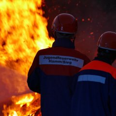Auch das Abendprogramm ließ keine Langeweile aufkommen: Während „Chefkoch“ Simon Bröcker den Grill anheizte und alle Teilnehmer Würstchen, Fleisch und Salate genossen, folgten schon die nächsten Alarmierungen. Ein umgestürzter Baum sowie eine Ölspur mussten beseitigt werden, ehe ein Brand im Etzbacher Bauhof für den größten Einsatz des Tages sorgte. Unter realistischen Bedingungen nahmen die Jugendlichen mehrere Strahlrohre vor, bauten eine Wasserversorgung auf und konnten den Brand eines großen Holzstapels erfolgreich löschen. Unterstützt wurden sie dabei von erfahrenen Feuerwehrleuten, die wertvolle Tipps gaben.