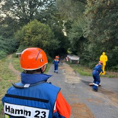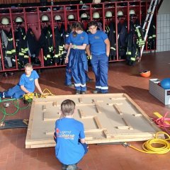 Bereits am Samstagmorgen, den 06.09.2025 trafen die Teilnehmer mit Taschen und Schlafsäcken am Feuerwehrhaus ein. Nach der Begrüßung durch Jugendfeuerwehrwart Nico Urban und die Betreuer wurden die Jugendlichen auf die Fahrzeuge verteilt. Kaum war die erste Ausbildungseinheit zum Thema Türöffnung gestartet, ertönten schon die Funkmeldeempfänger: Vermisstensuche! Gemeinsam mit der Rettungshundestaffel der Feuerwehr Hamm (Sieg) suchten die Jugendlichen das Gelände ab – und konnten alle „vermissten Personen“ sicher auffinden.